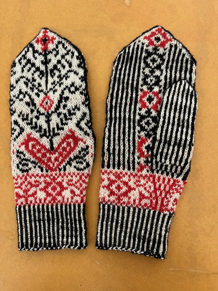 Kolla in Stockholms Läns Hemslöjdsförenings vante 2022 med inspiration från Botkyrkadräkten.