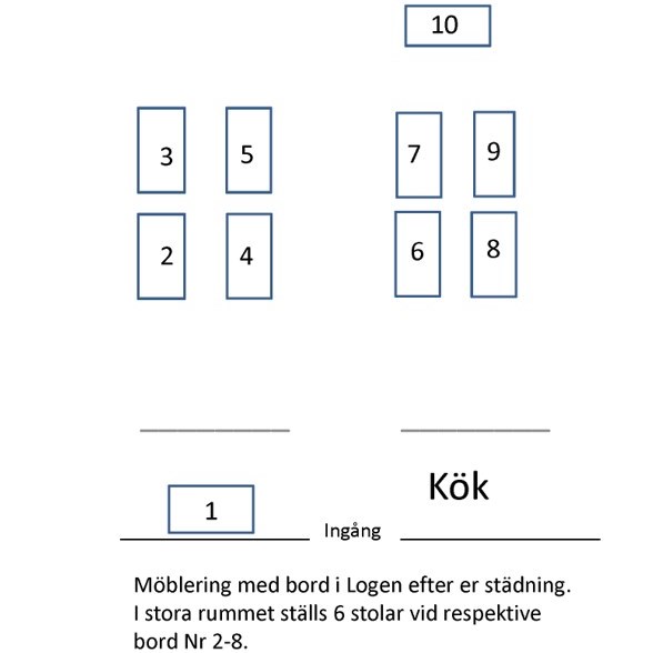 Bokning sker kvällstid och helger hos Michael Häggmark, tel 072-728 96 62 eller mail haggmarkmichael66 (at) gmail.com Byt ut (at) mot tecknet @. Av honom får du information om hur du hittar nycklar till samlingslokalen Logen (och sommartid juni till september till handikapptoaletten, som placerad i egen byggnad utanför entrédörren...
