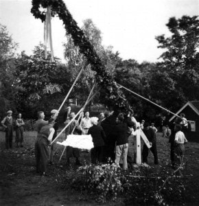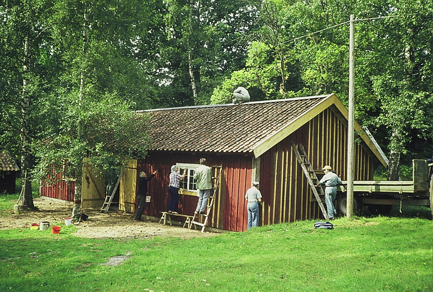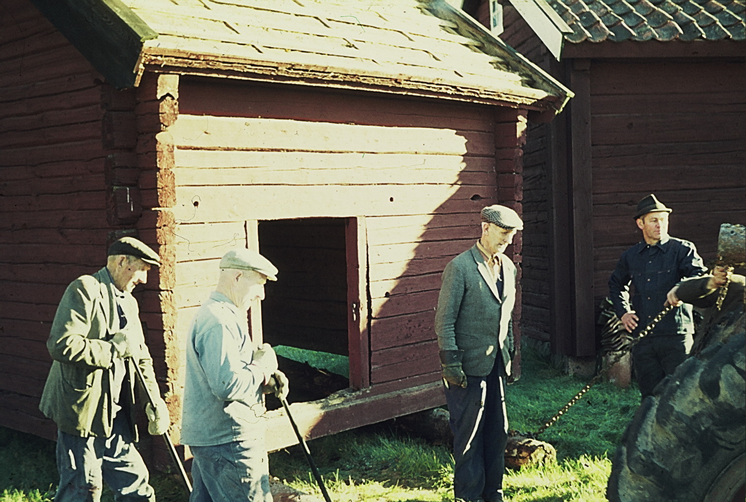 Visthusboden kommer på plats 1971 av fr.v. Erik Ström, Henrik Fridström, Olle Wisén, Ingemar Johansson