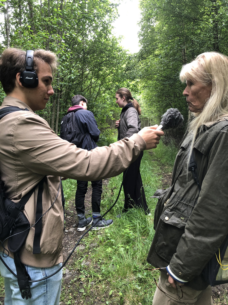 Här intervjuas arkeolog Lena Berglund, Länsstyrelsen Halland. Lena var på plats för att visa