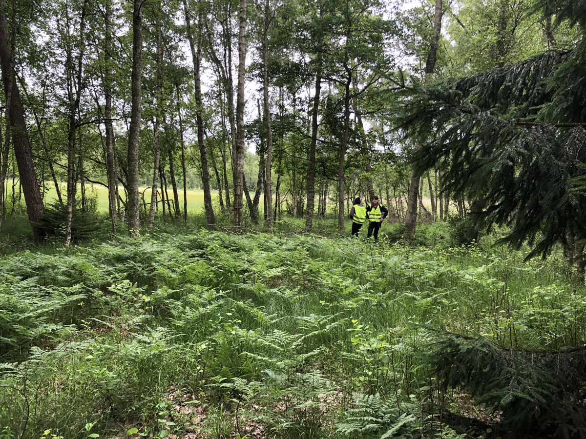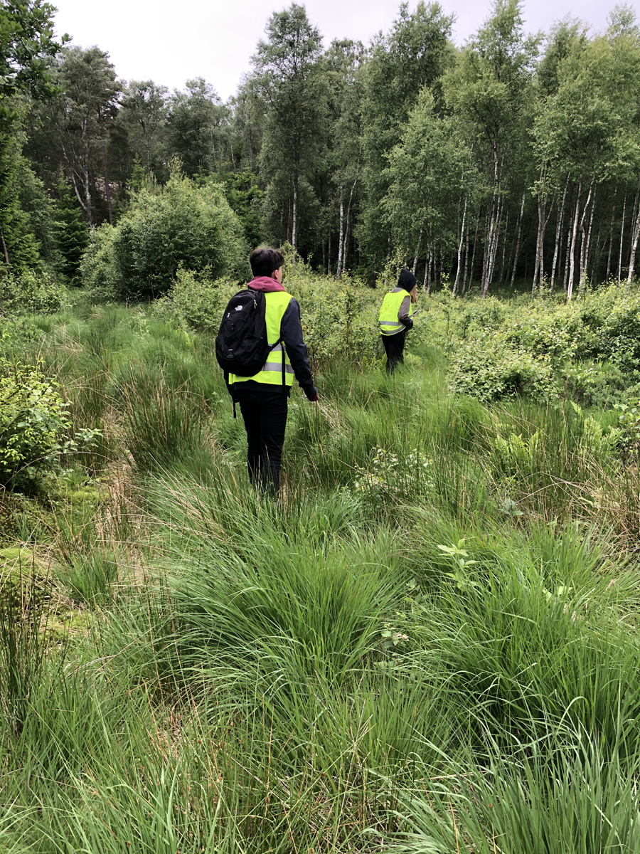 På väg till Vedes mosse i Landa. Här fick ungdomarna ge sig i närkamp med grönskan.