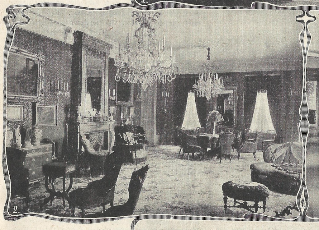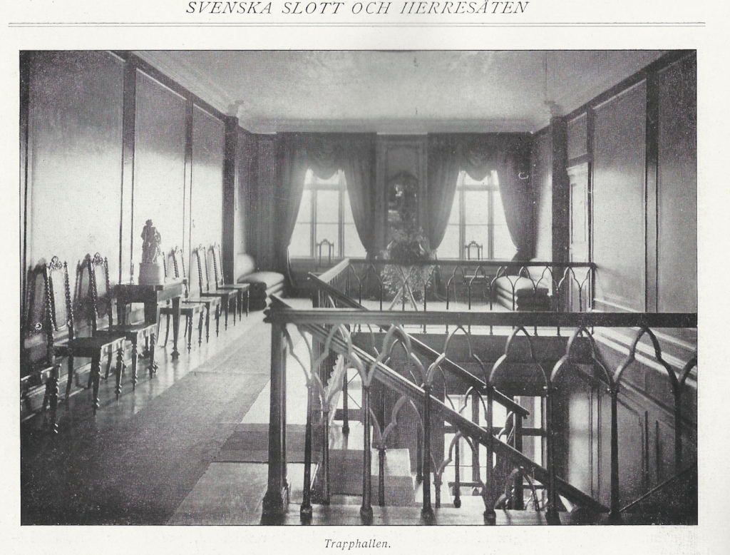 1904 såg trapphallen ut så här med stolar som nu finns på hembygdsgården. Ovan syns också en av salongerna 1904