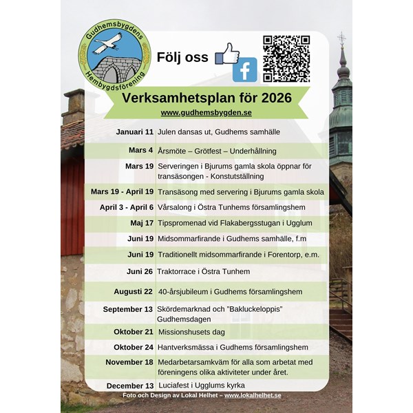 Gemenskap i dåtid – nutid och framtid för ung som gammal Gudhemsbygdens hembygdsförening är en av Västergötlands största hembygdsföreningar med ca 800 medlemmar och med 17 aktiviteter enligt vår senaste verksamhetsplan.