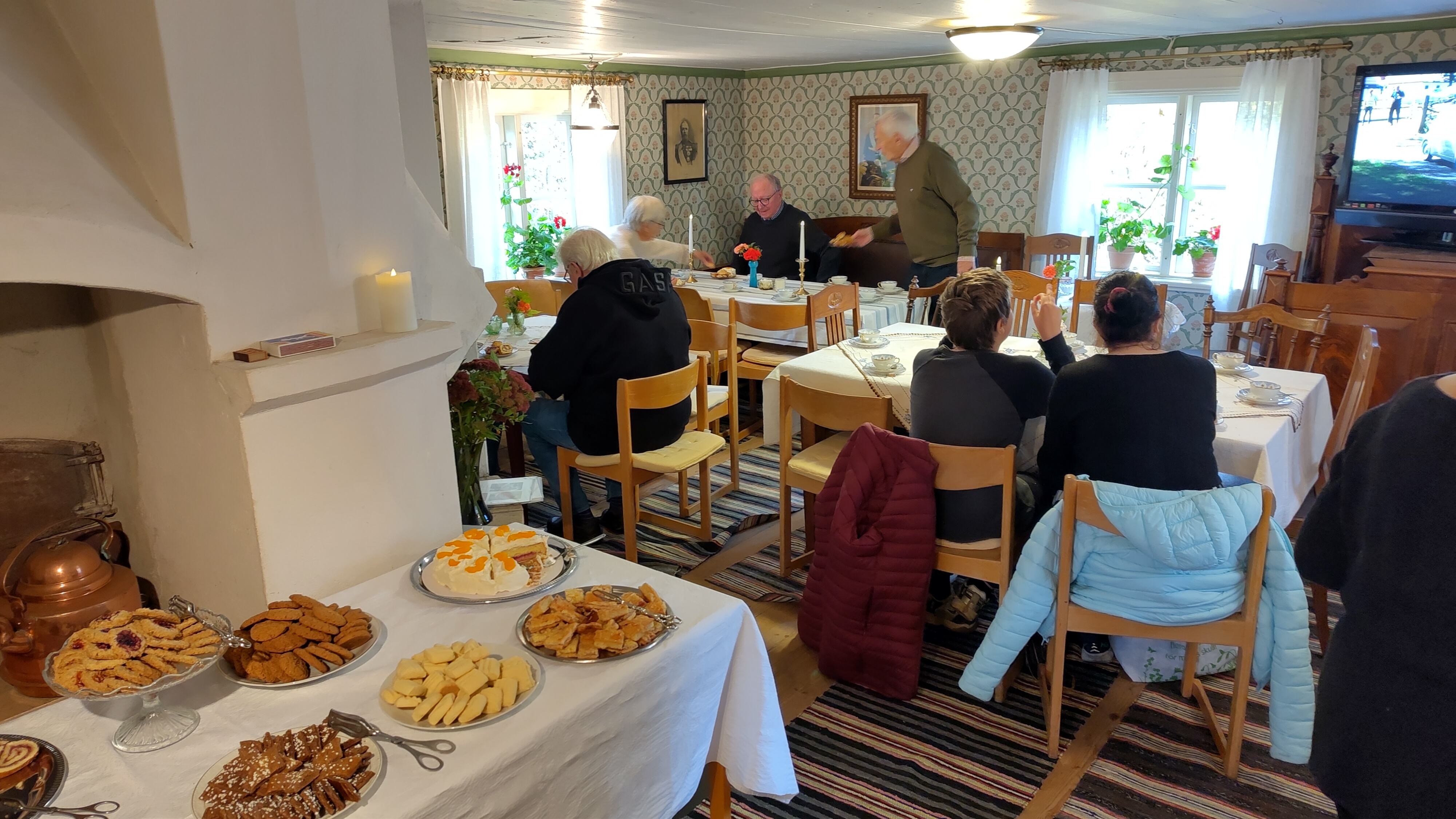 På detta sätt vill vi tacka alla besökare som på temat fika som kulturarv kom till hembygdsparken på internationella fikadagen den 20 oktober. Stort tack till gamla bekanta ansikten som dök upp denna dag men också till nya bekantskaper — vissa komna ända från Borås, andra nyligen inflyttade till Habo. Till vår stora glädje steg snart sorlet rejält vid och mellan fikaborden, vilket kunde vittna om att trevnaden var på topp denna dag!
