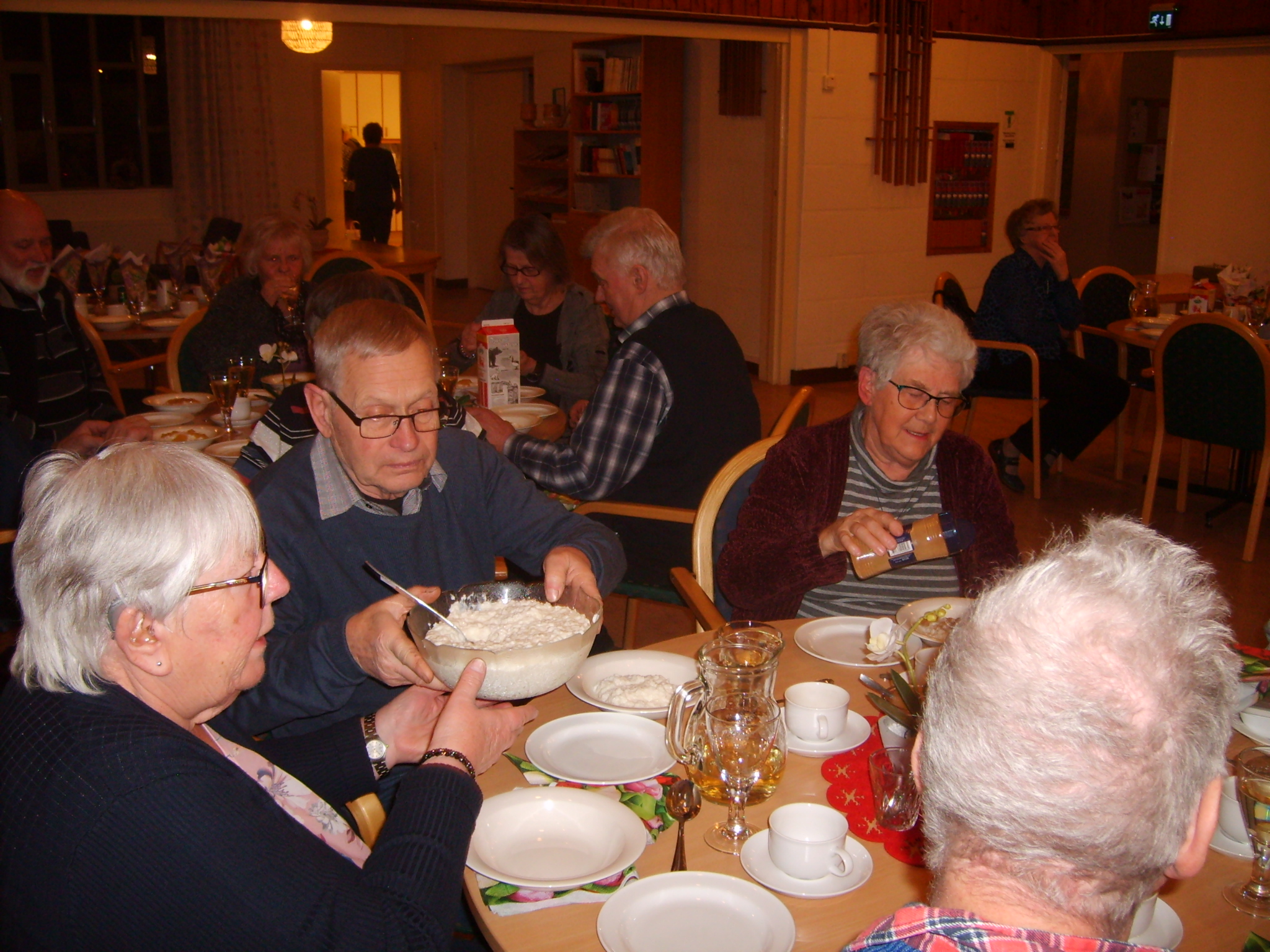 Fredag den 18/1 2019 hade vi vår Vinterfest i Hols församlingshem. Vi var 30 personer som fick äta en massa god risgrynsgröt med kanel, socker och äppelmos.