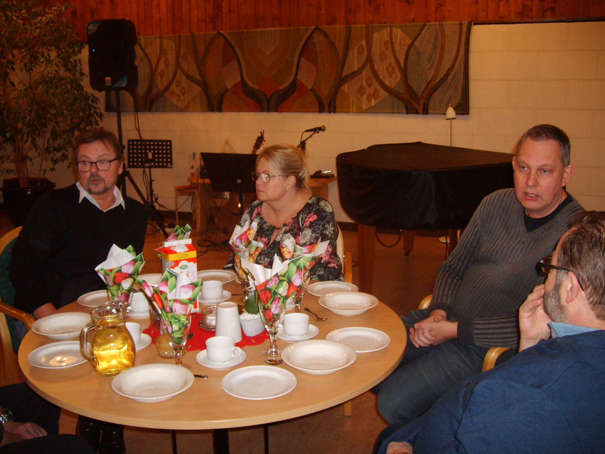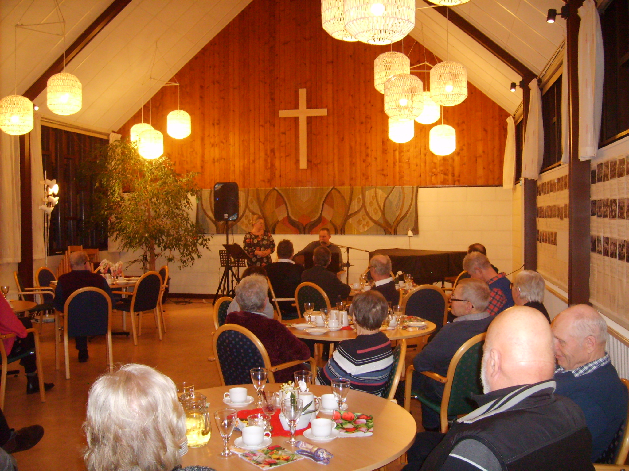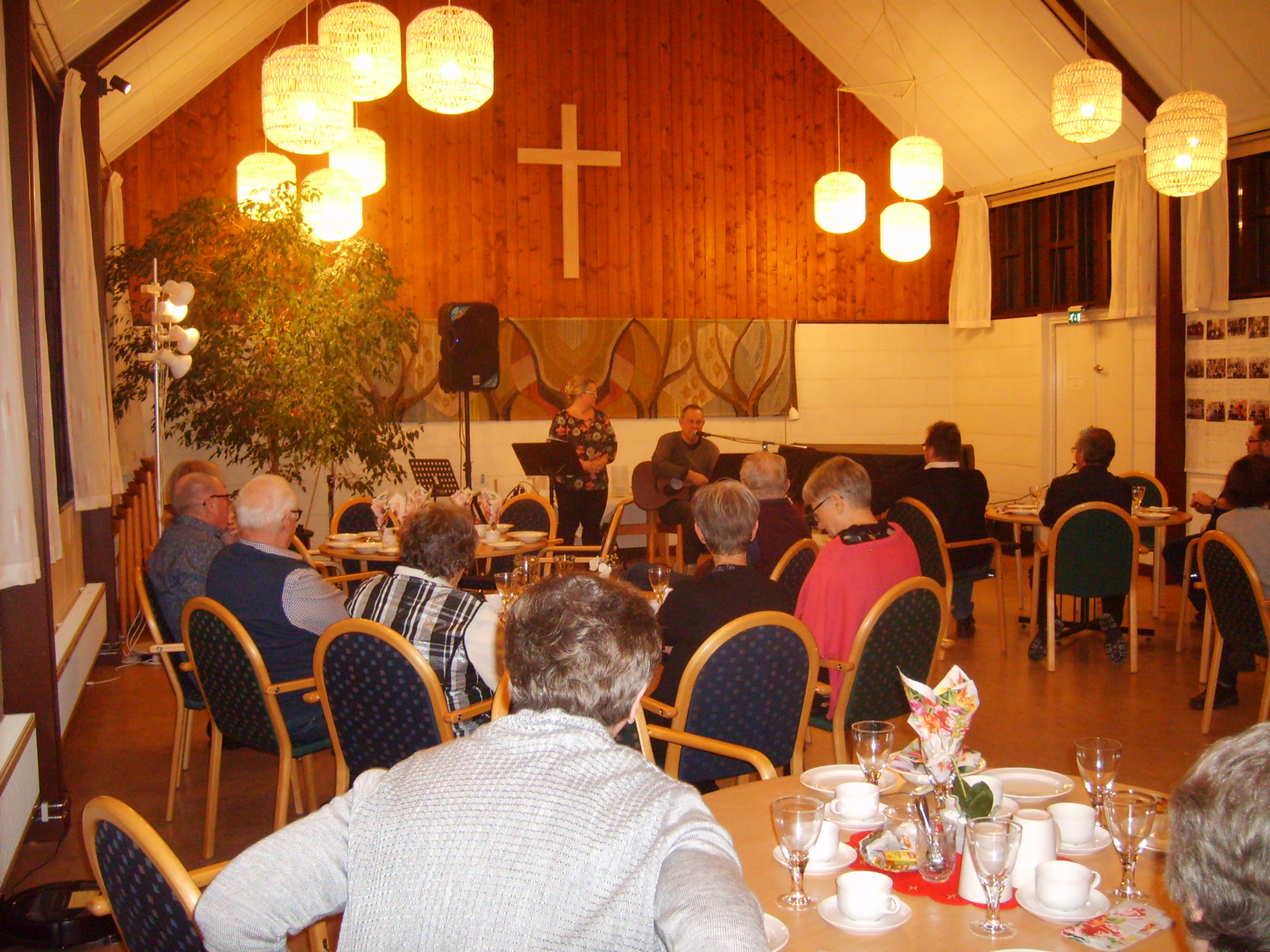 Både före och efter detta fick vi höra vacker sång och musik av Helena och Klas Ling från Kärtared. Efter sångunderhållningen fick vi kaffe och en god kaka. Efter en stunds gemytligt konverserande vidtog den för kvällen efterlängtade lottdragningen. Varje gång är det alltid några som får gå fram flera gånger och hämta vinster.