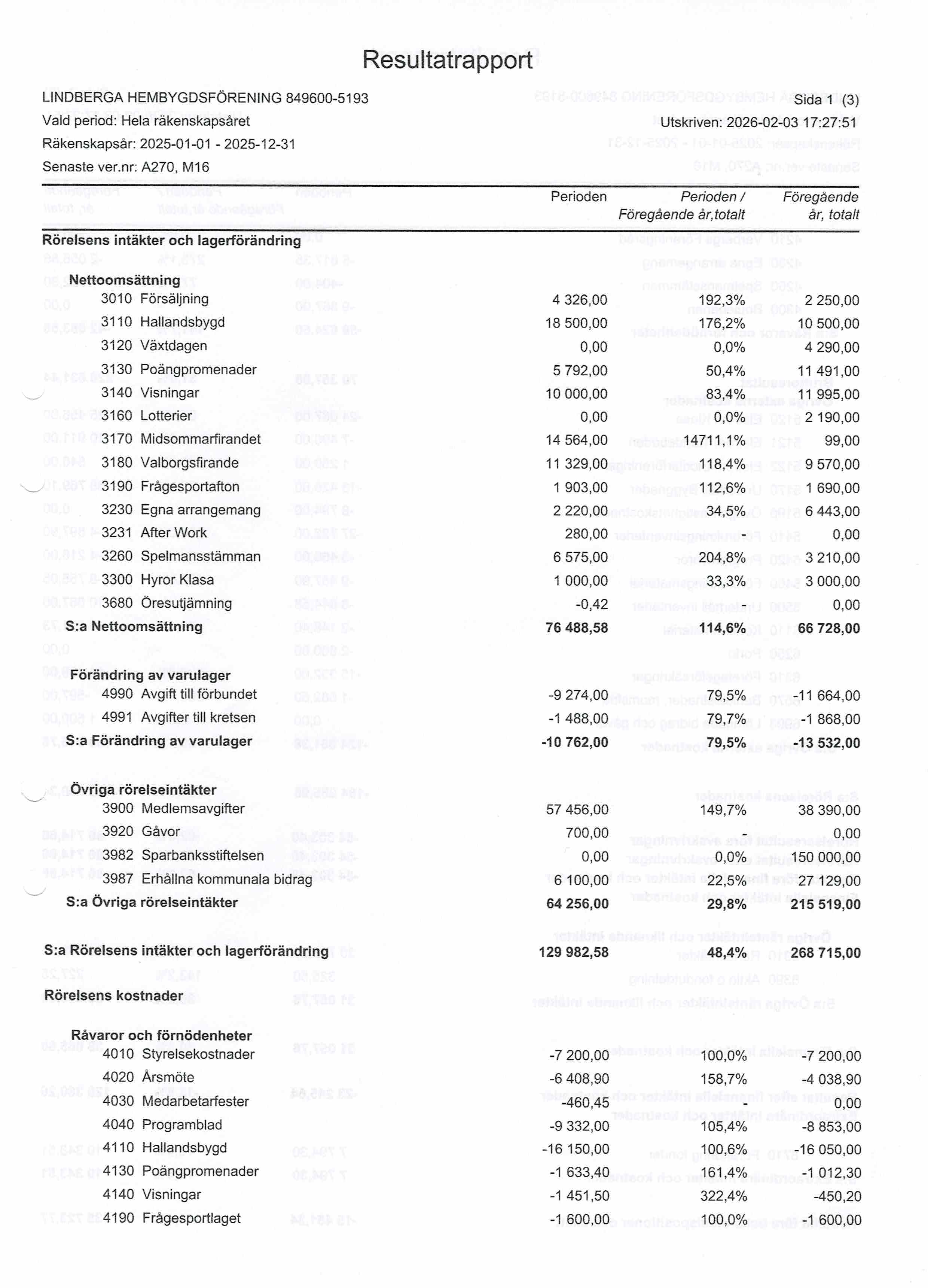 Vid styrelsemötet 251202 var samtliga byombud inbjudna samt Klasakommittén och sammankallande i valberedningen för att i gemytlig stämning avnjuta risgrynsgröt och skinksmörgås och som avslutning kaffe och kaka. Diskussionerna var trevliga varvid byombuden fick med sig 2026 års-program för utlämnande i Lindbergsdistriktets brevlådor i socknarna Lindberg, Torpa, Stamnared och Valinge...
