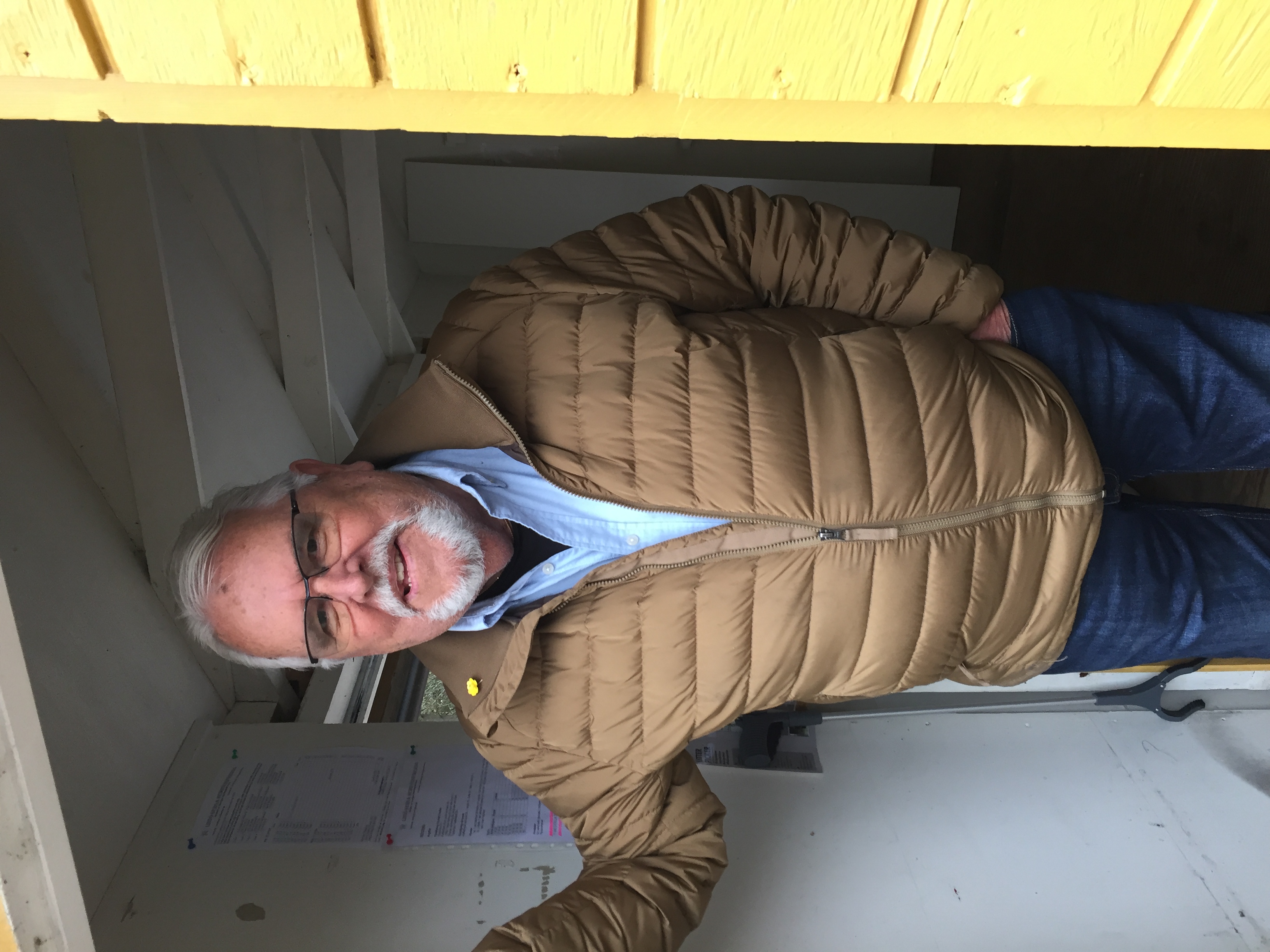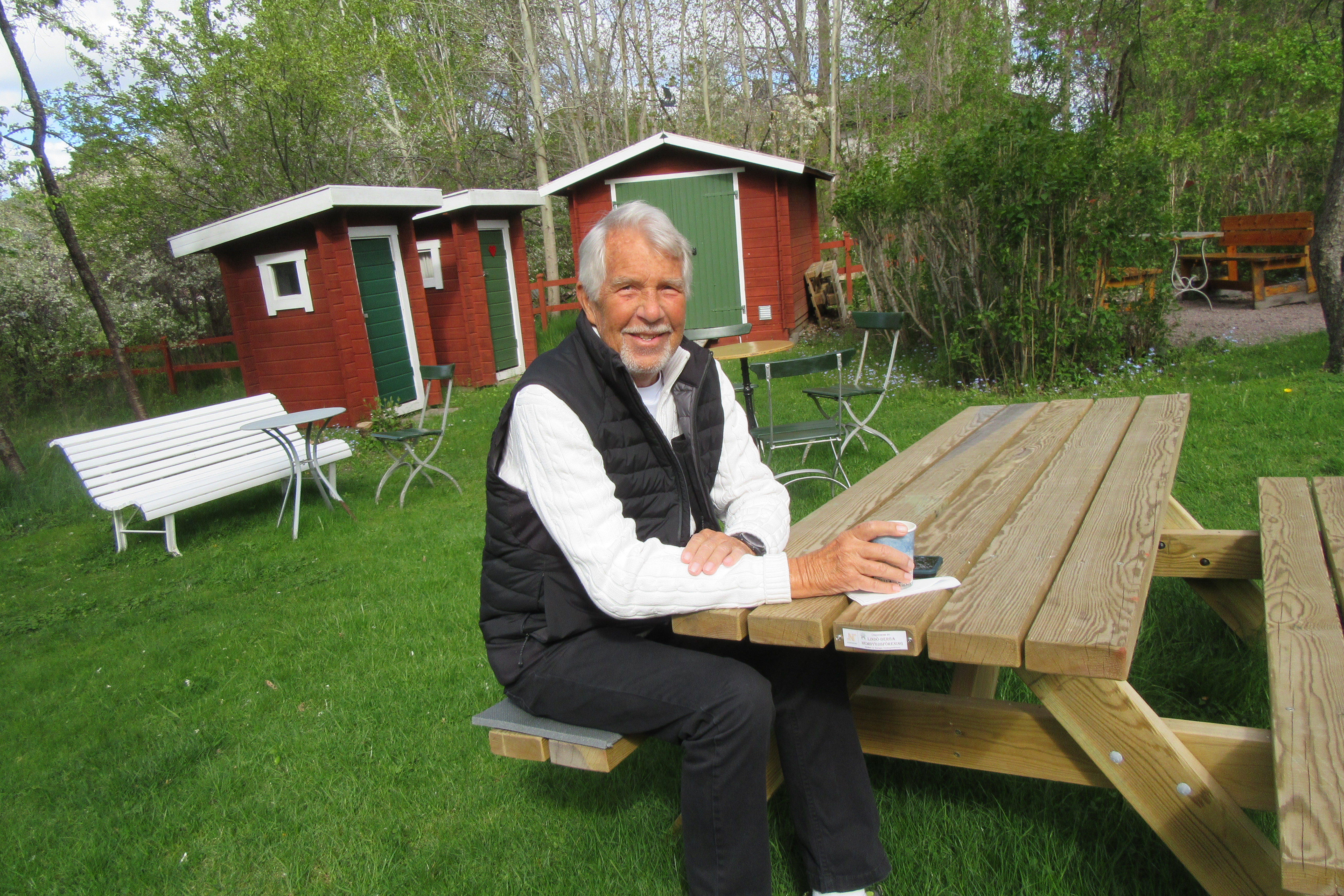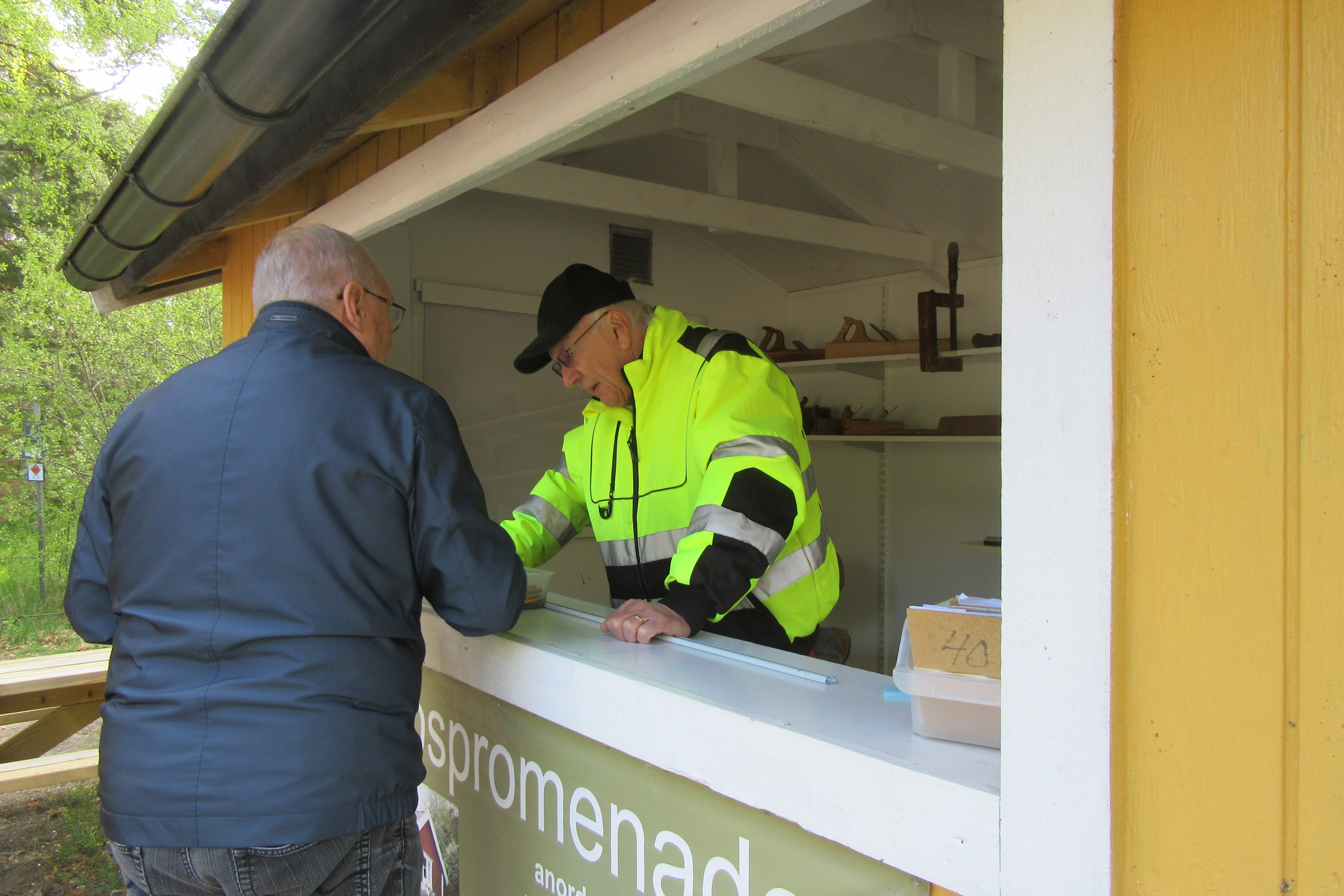 Bertil Olsson, dekorerad med årets majblomma, redo att sälja tipsbrickor