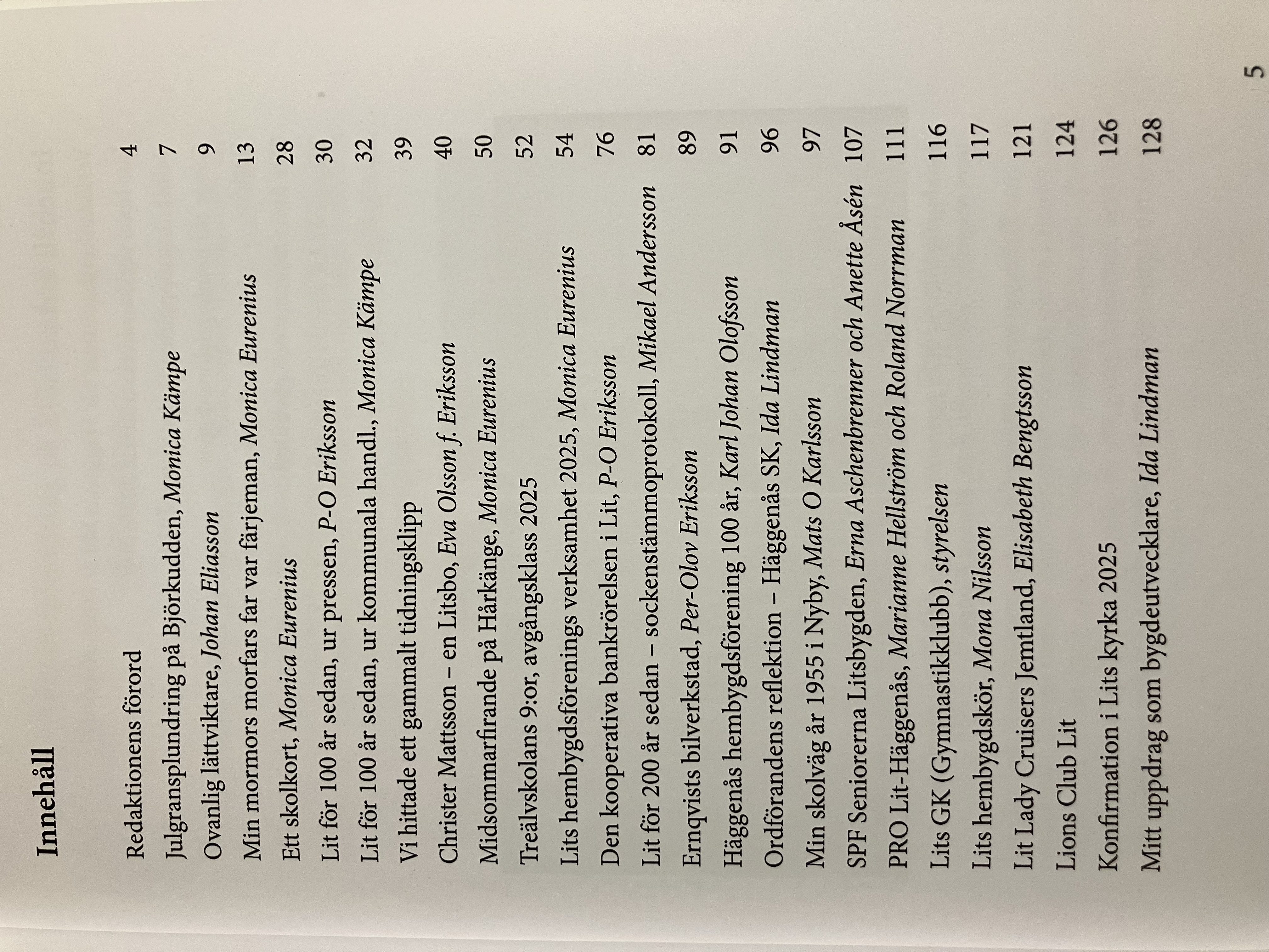 Vår sockenkrönika ”Litsboken” har kommit ut nästan oavbrutet sedan 1947. Endast åren 1952, 1954, 1961 och 2003 gavs ingen bok ut. Boken kommer ut i mitten av december.
