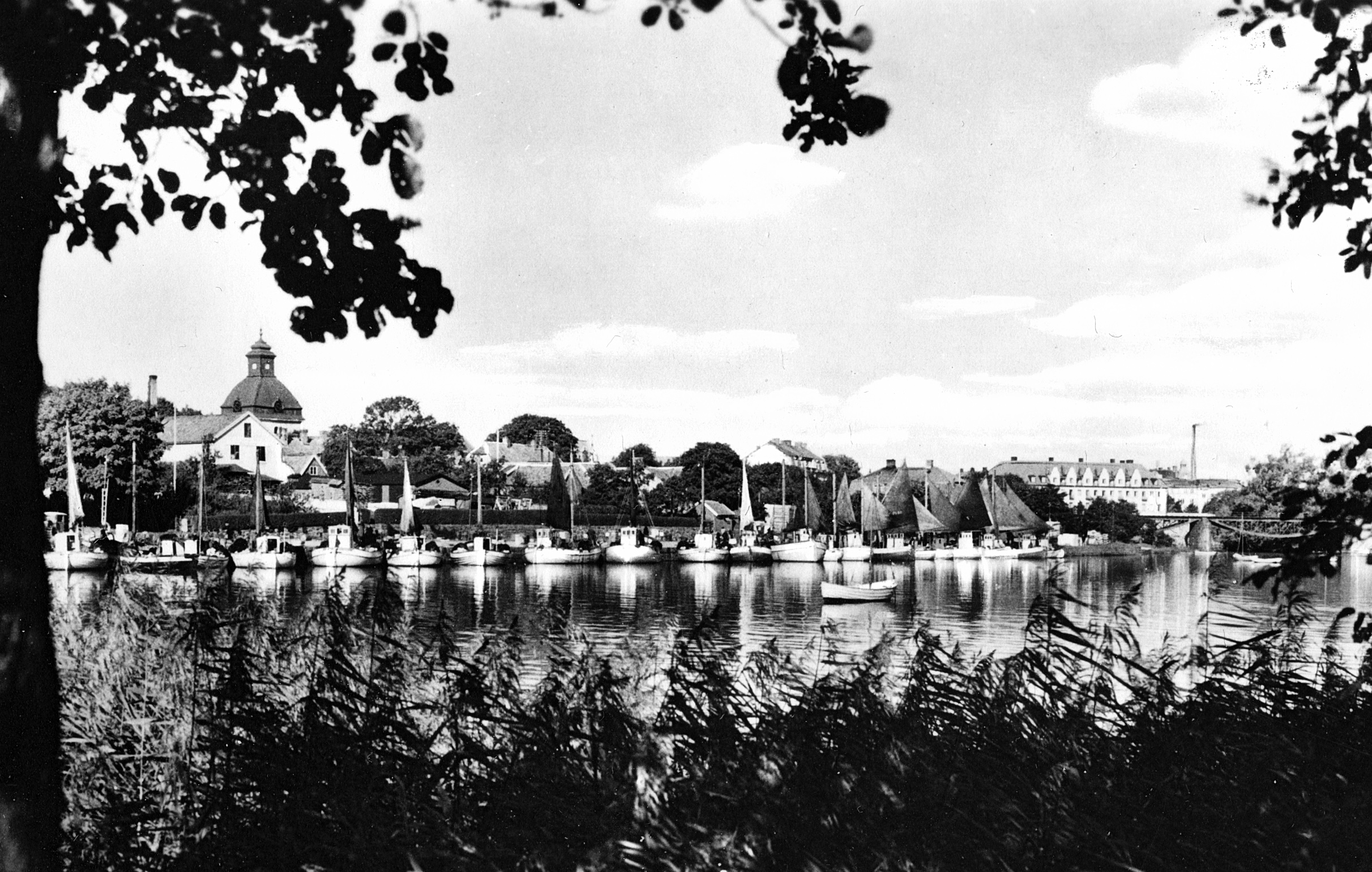 Fiskhamnen i Falkenberg tidigt 1930-tal. Motorräddningsbåten Adolf Bratt stationerades vid
