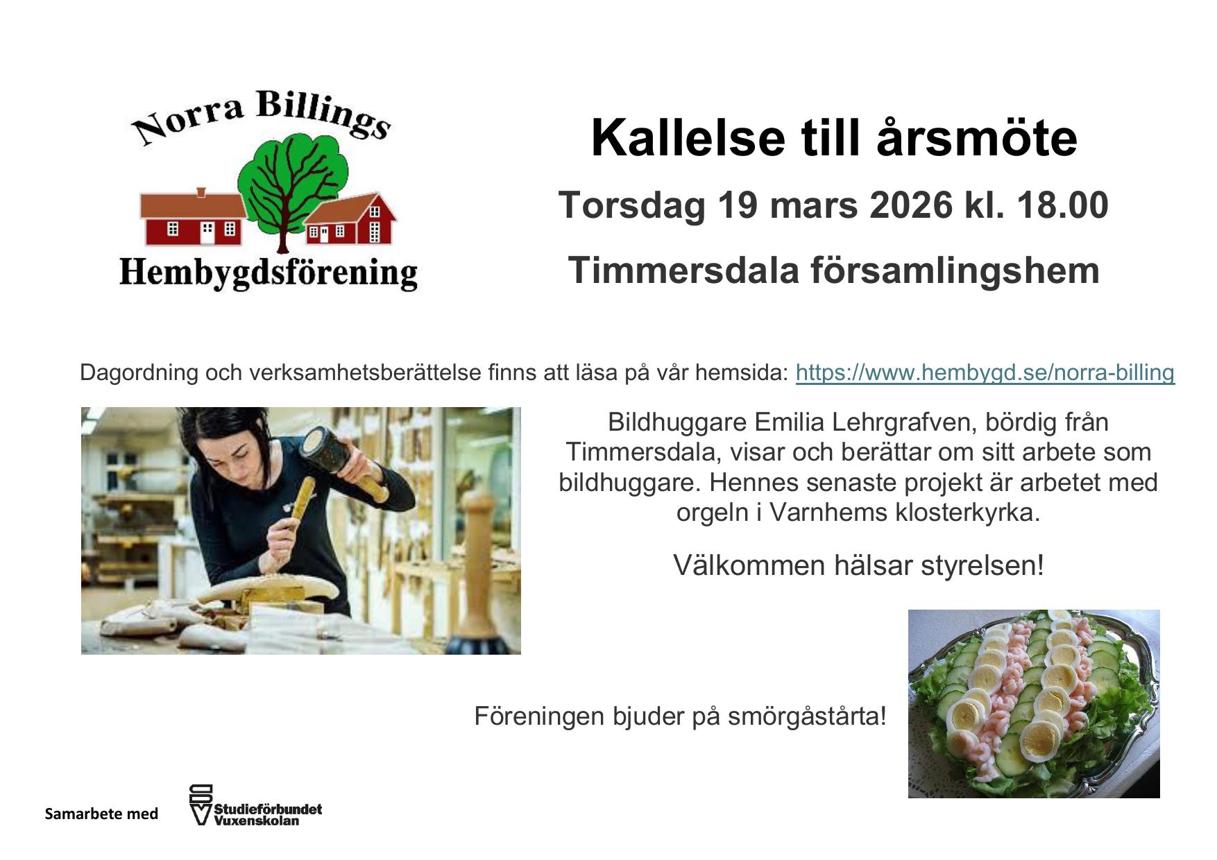 Kallelse till årsmöte torsdagen den 19 mars kl. 18.00 i Timmersdala församlingshem.
