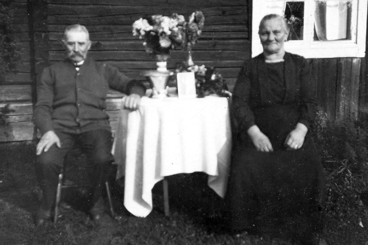 "Pell-Pers" Per Persson och hustrun Eva Maria f. Karlsdotter. Per f. 1/10 1851, död 14/8 1934, Eva f. 6/3 1867, död 19/3 1938.