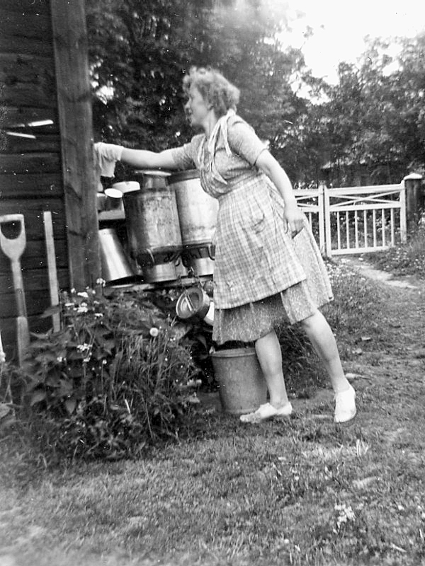 Astrid Keisu f. Westerlund sköter diskningen efter morgonens mjölkning.