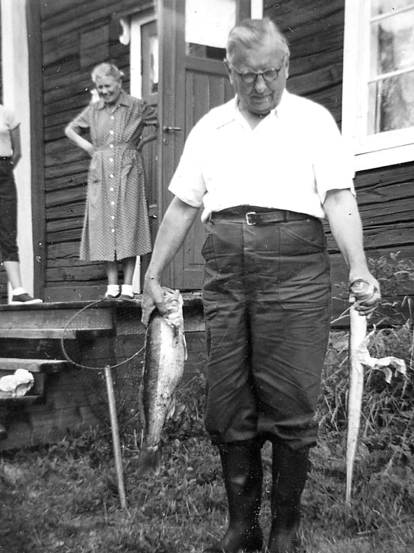 August Nyberg med fru, sommarboende i "Elma" gården, 1950-tal. August har