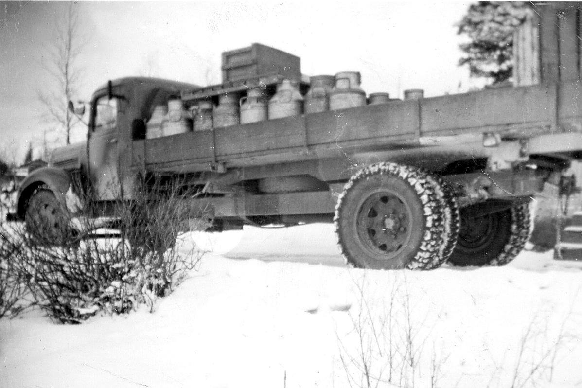 Viktor Jansson, "Mjölk-Viktor" körde mjölken från bönderna på Söderön och Raggarön till mejeriet i Norrskedika. Bilderna från början av 1950-talet.