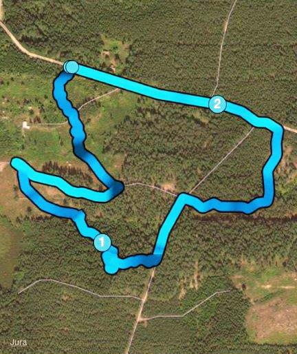 Den första delen följer landsvägen fram till vägen till Kruslockatorpet. Markeringen för stigen utgörs av stolpar rödmålade i toppen. Efter ett stycke viker stigen till vänster och i sluttningen ligger resterna av en tjärdal.