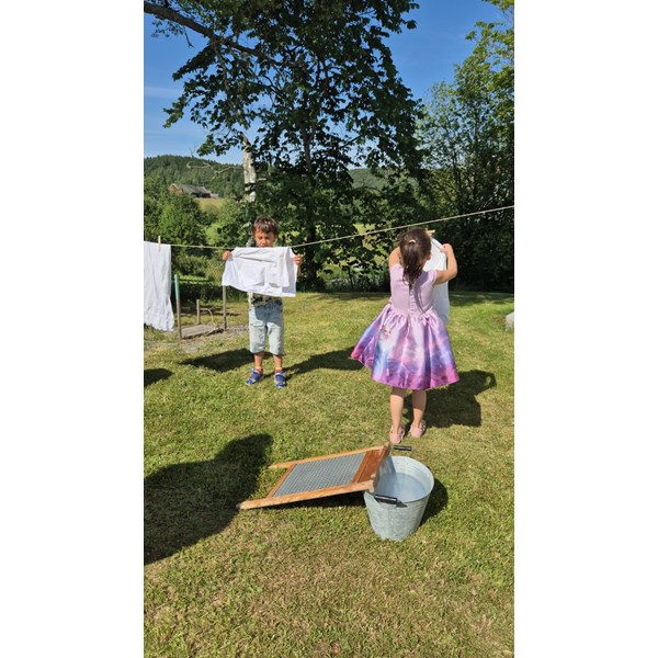 På förmiddagen fanns det möjlighet för barnen att göra egna vaxljus, tvätta som för 100 år sedan, skriva på griffeltavla mm genom aktiviteten Hembygdsresan.