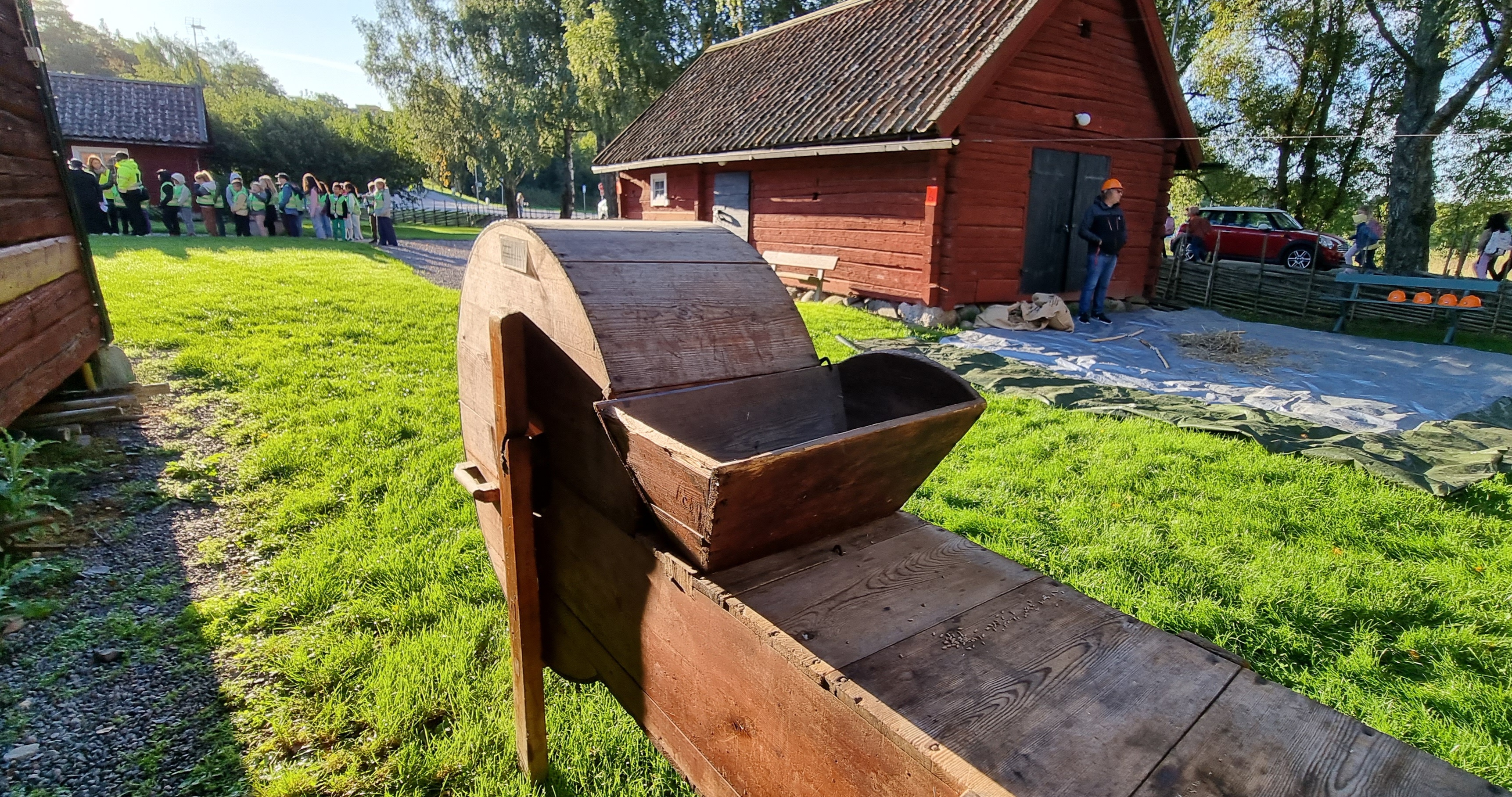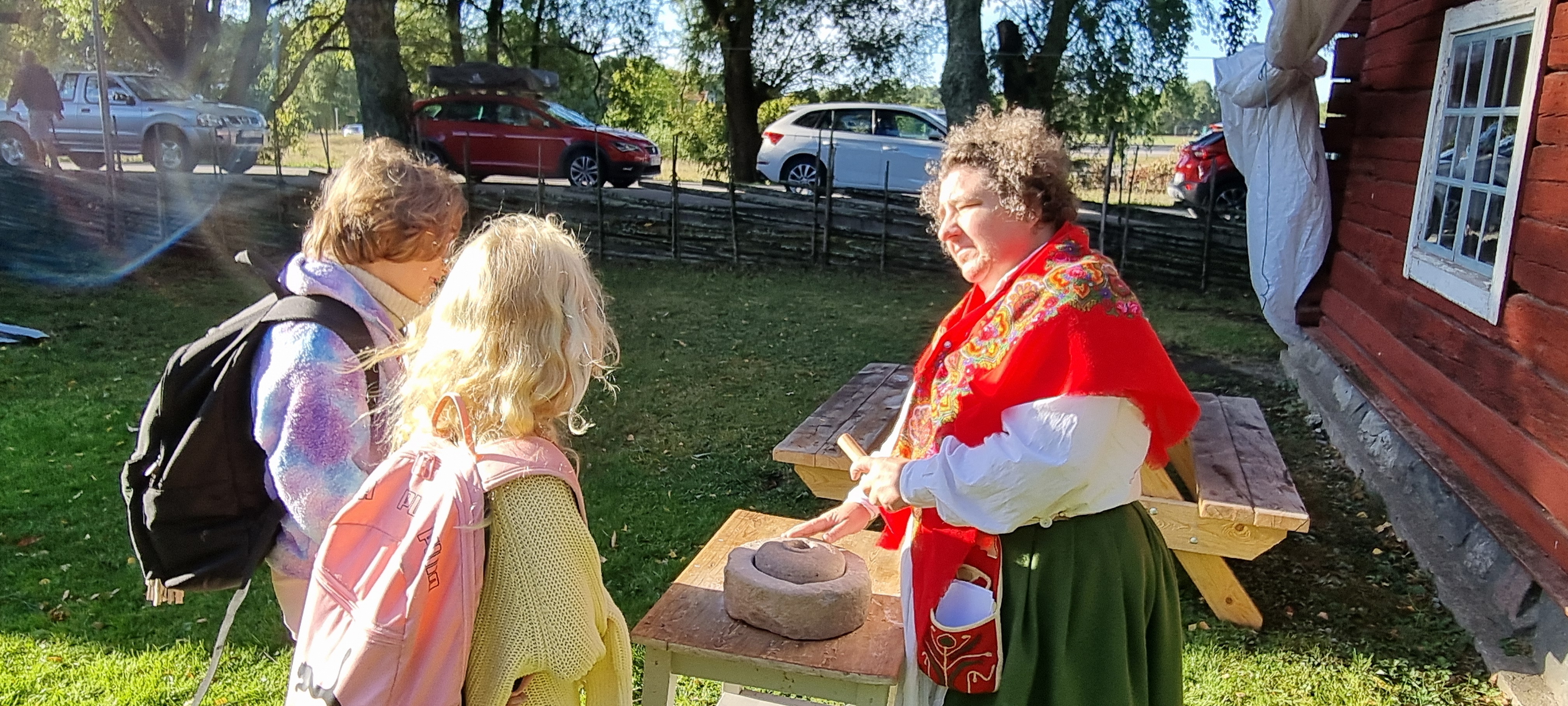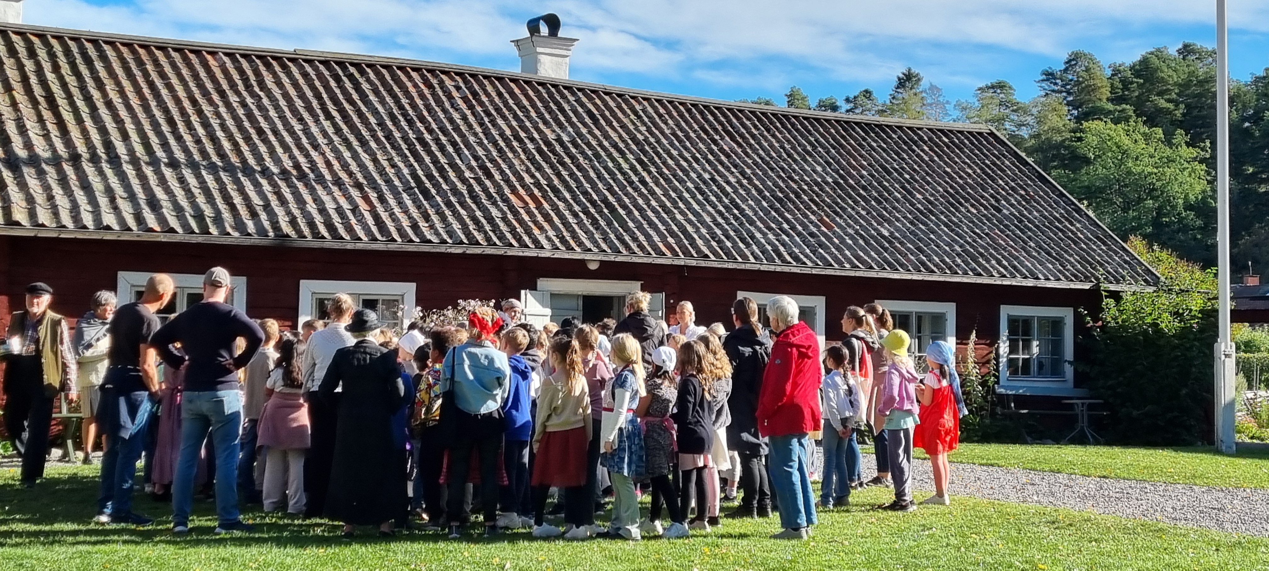 Skolelever besöker Hembygdsgården tillsammans med sina klasser och lärare under en dag i september för att pröva på livet förut.