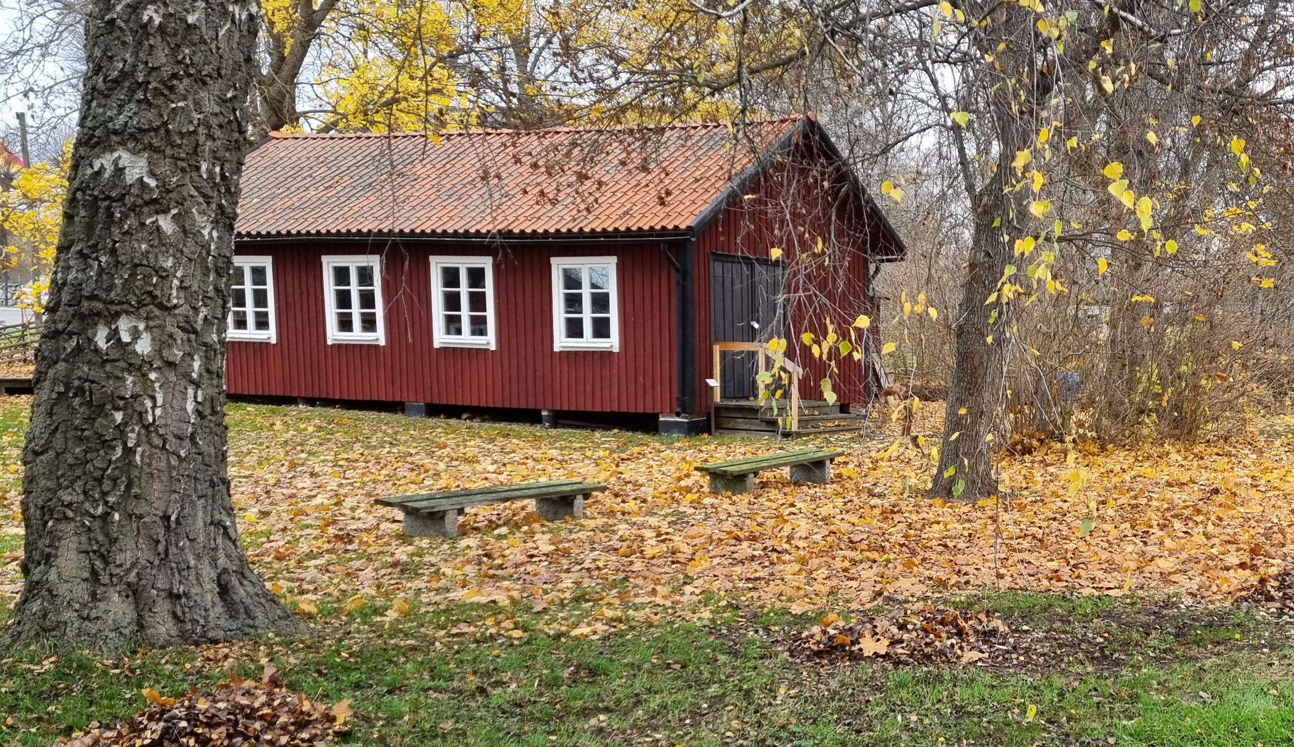 Torpet Lund i förgrunden med Lantbruksmuseet i bakgrunden.