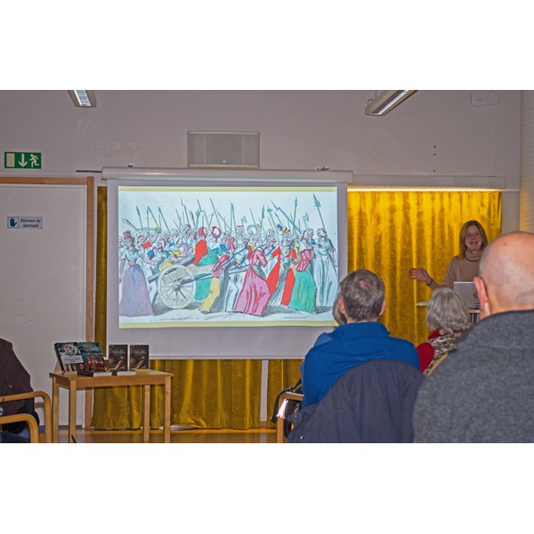Hon berättade om sin bok Förbindelsen som handlar om Axel von Fersen och Marie-Antoinette.