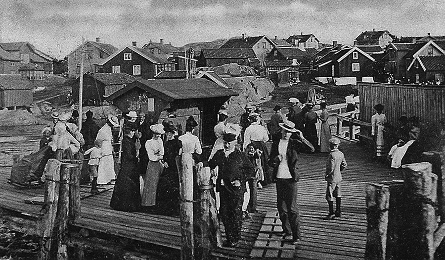 In the beginning of the 19:th century the Öberg family took over the herring salting factory which was situated by the sea and started an inn – Café Öbergska today. In the end of that century a spa company was formed, when also wealthy people built fancy summer houses nearby. The Arbores Society organized planting of trees in the nearby park for recreation and they are still active organizing amongst others the great Midsummer festivities on Bratten. Today there are a pub and a traditional retro-café as well as a guest harbor and a bath at a beach 200 meters further to north.