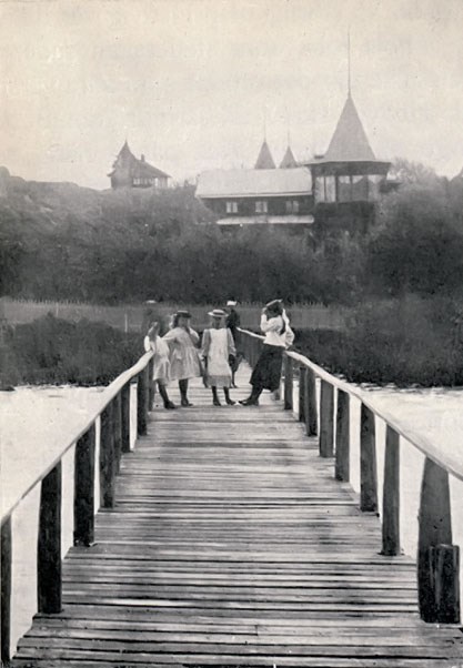 Barnen och jag företogo alla dagar åkturer i hotellets ekipage, den med hästen ”Pärlan” förspända trillan. Två av barnen togo plats på baksätet, och mellan kusken och mig satt alltid lillan. Men omsider kommo pojkarne underfund med att det var ett stort nöje att köra Pärlan, och det dröjde ej länge innan de utverkade sig tillåtelse att turvis intaga kuskens plats bredvid. Hedvig skulle förstås ej vara sämre, och en dag klättrade hon upp och tog tömmarna, försäkrande att hon mycket väl visste hur det gick till att köra – varpå hon vände sig till kusken och frågade: ”hur skall jag göra när hästen skall gå till höger eller vänster?” – Carl hjälpte mig som vanligt med min fotografering, och med aldrig tröttande nit jagade han höns, kor, grisar och andra kreatur tills de intagit de ställningar som krävdes.
