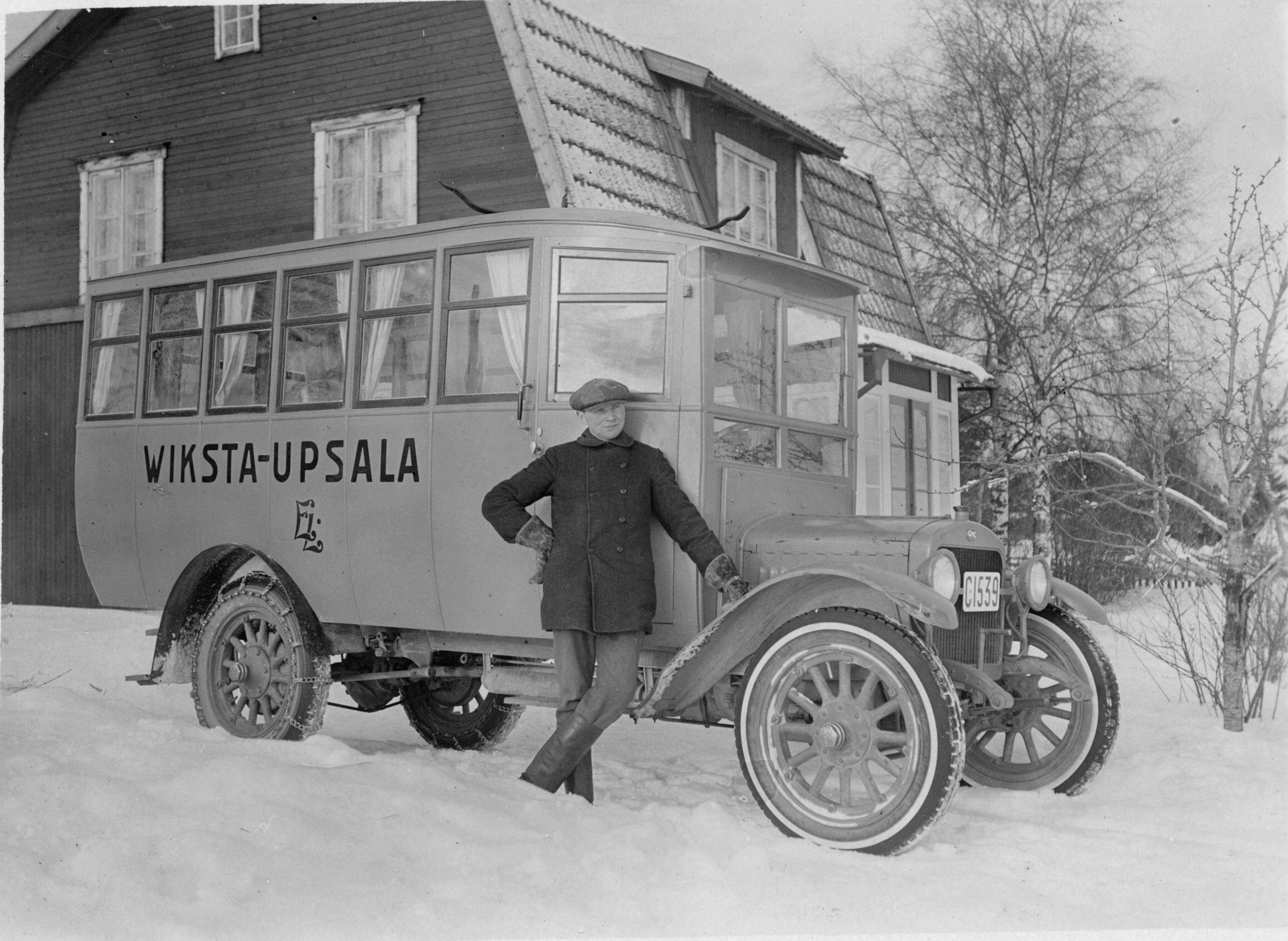 I september 1923 fick Vikstabon Efraim Larsson tillstånd att bedriva busstrafik på sträckan Viksta-Uppsala. Ett chassi av märket G.M.C. med en motor på 30 hästkrafter inköptes. En plåtskodd kaross byggdes av K.V. Nilsson i Uppsala. Den färdiga bussen rymde 20 sittande passagerare och hade längsgående stoppade säten.